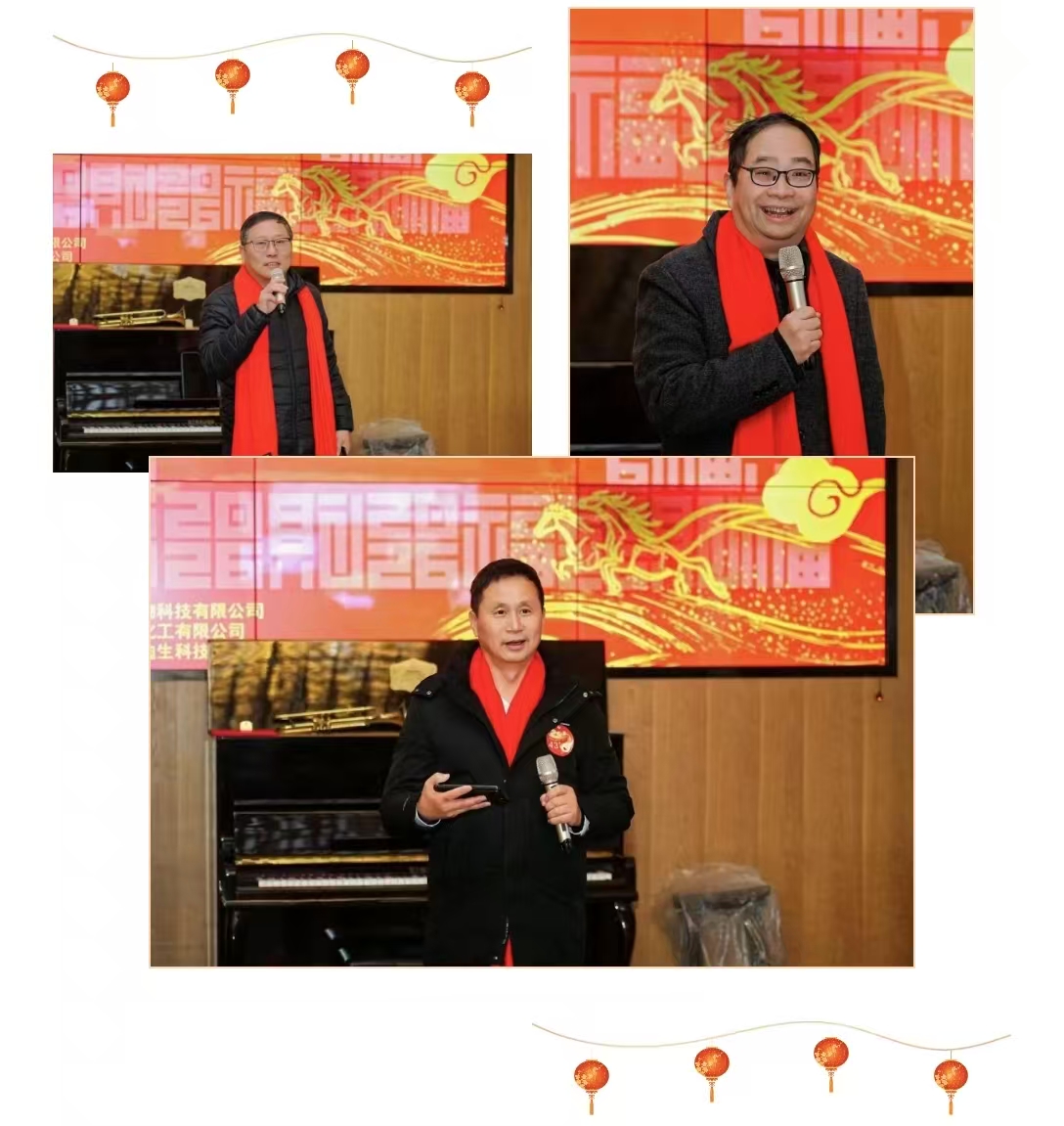 年会主场灯光璀璨,盛典拉开帷幕。倪杰董事长发表新年贺词,回顾2025年我们携手走过的风雨兼程与累累硕果,感谢全体伙伴的辛勤付出与不懈坚守,更展望2026年“骏骐新程”的宏伟蓝图,鼓励大家以龙马精神再攀高峰。赵总、王总、苏总依次送上新春祝福,言辞间满是对团队的期许与关爱,让现场暖意融融。