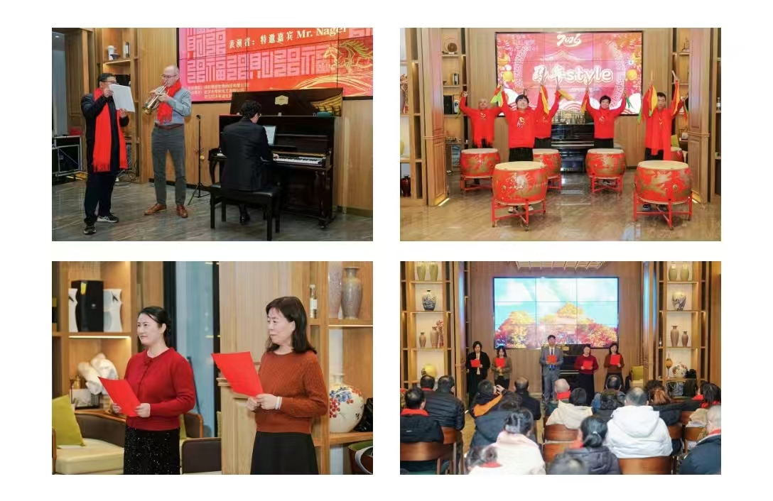 最令人期待的才艺表演环节,堪称一场视听盛宴!青年团歌舞《我们都是追梦人》活力满满,点燃全场热情;欢乐鼓《马年style》节奏铿锵,奏响新年的激昂序曲;特邀嘉宾宋诗绮的古筝《白马》婉转悠扬,余音绕梁;Mr. Nagel的小号独奏沉稳有力,尽显国际风范。